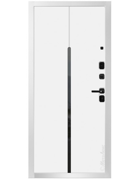 - Фрезерованная влагостойкая панель МДФ высокой плотности 16 мм, эмаль, цвет "Белый" (цвет на выбор), вставка из черного глянцевого стекла