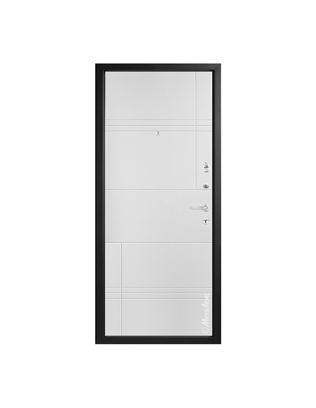 • Полотно двери оснащено мощными противосъемными ригелями диаметром 16 мм