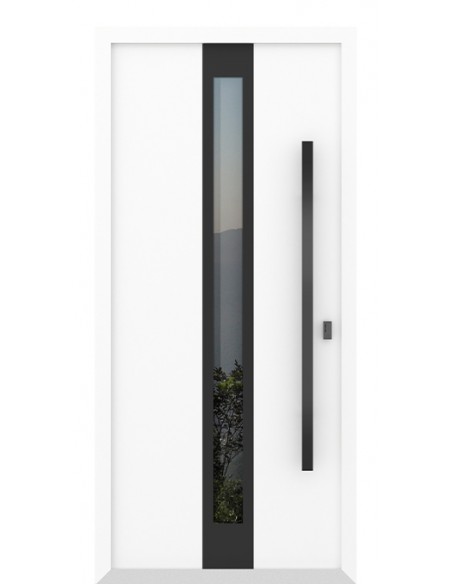 - Оцинкованная сталь, атмосфероустойчивая порошковая краска (цвет на выбор), декоративная металлическая вставка цвет черный (на выбор), стеклопакет четырехкамерный, графит/бронза