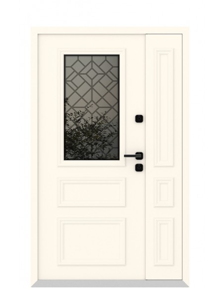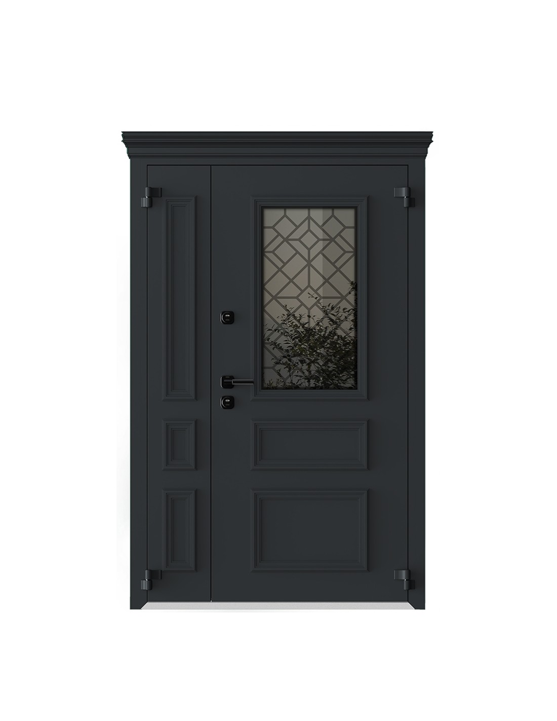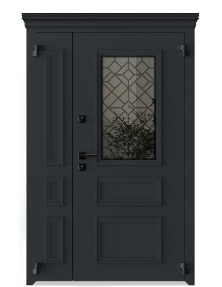 - Оцинкованная сталь, атмосфероустойчивая порошковая краска (цвет на выбор), декоративный алюминиевый штапик (неоклассич. дизайн), стеклопакет