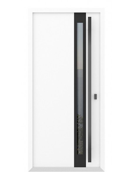 - Оцинкованная сталь, атмосфероустойчивая порошковая краска (цвет на выбор), декоративная металлическая вставка (цвет черный), стеклопакет четырехкамерный, графит/бронза (на выбор)