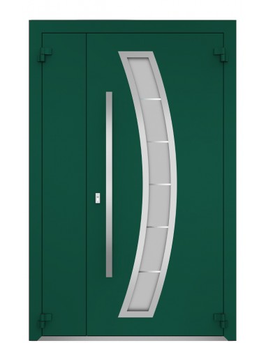 - Оцинкованная сталь, атмосфероустойчивая порошковая краска (цвет на выбор), декоративная вставка из нержавеющей стали (на выбор), стеклопакет четырехкамерный, печать УФ краска